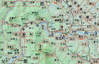 図 2.埼玉県児玉郡寄居町、秩父郡長瀞町周辺地形図