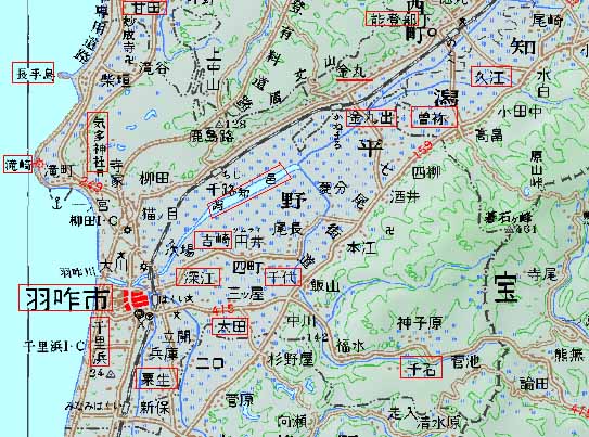 内灘町 ウチナダ ut-na-ta 枝状の水辺の所