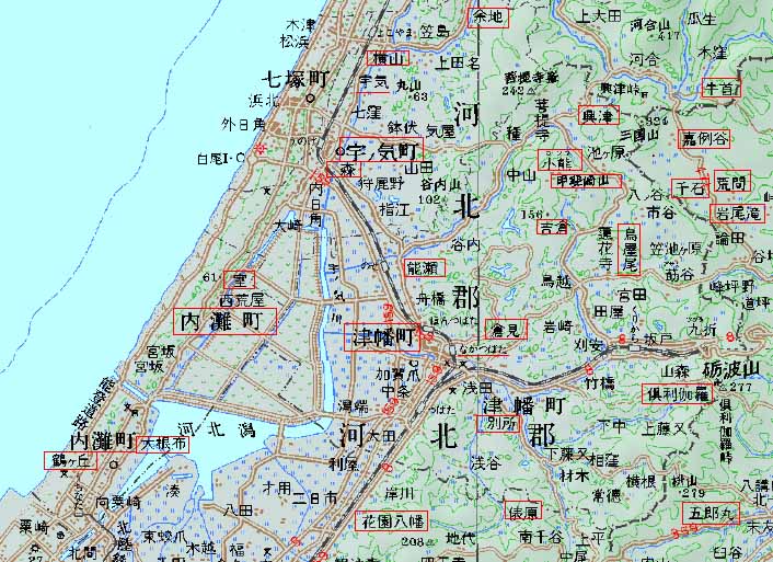 さらに北上し約33Km進むと物質の集散地、羽咋郡富来町である。途中の羽咋郡志賀