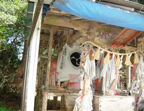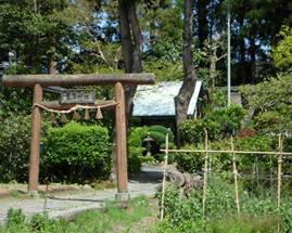 図 1.多賀城跡東にある荒神社鳥居  図 2.神社の内部、左にコンセイ様が見える