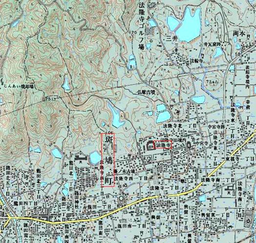 図 6.奈良県生駒郡斑鳩町法隆寺の周辺地形図