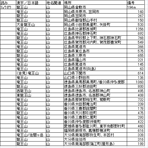 お、この地名は以前調べたことのある「リュウオウ」地名と同じではないかと考えてみた。