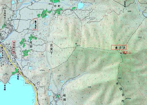 図 4.山口県下関市の竜王山、吉見竜王町の地形図